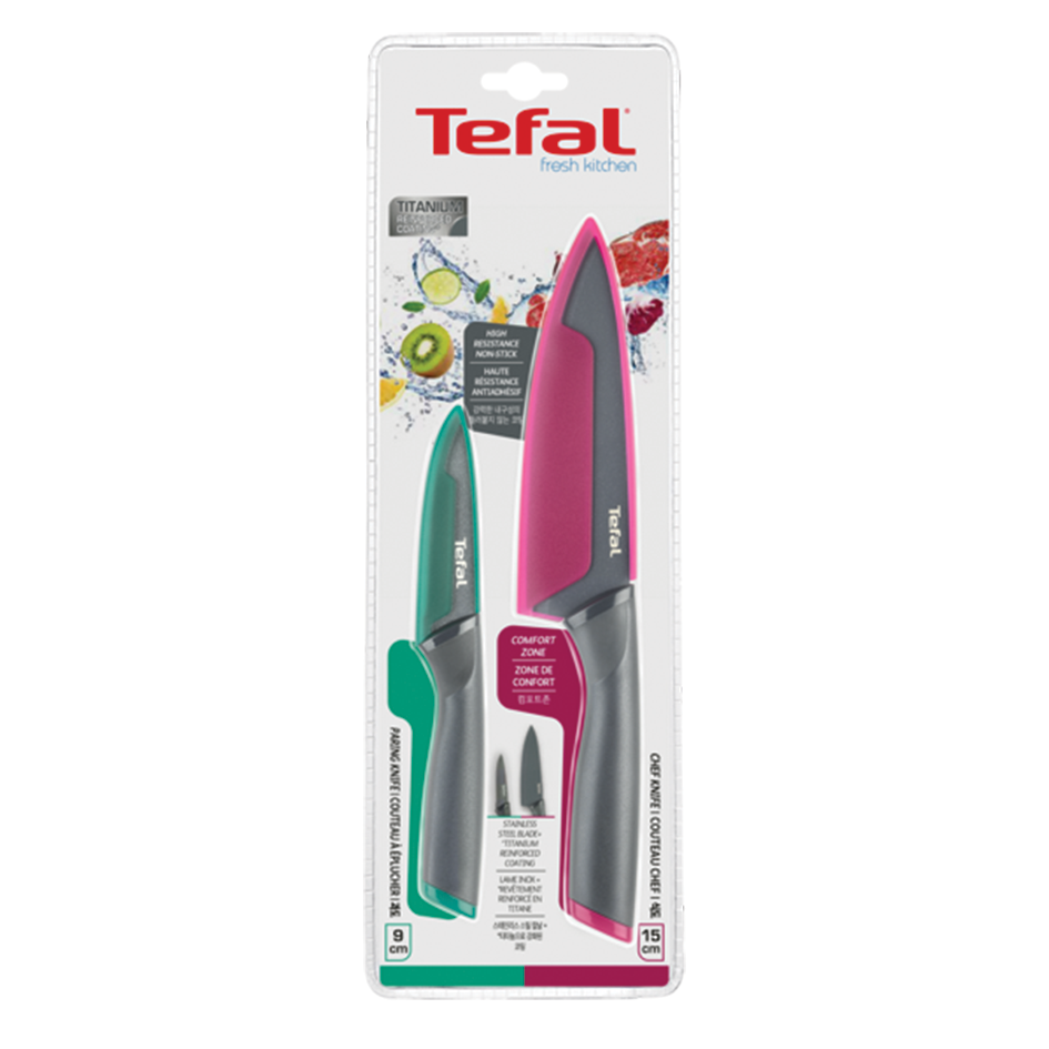 ست دو تیکه چاقو 15 سانتی متری سرآشپز و چاقو میوه خوری 9 سانتی متری تفال TEFAL Fresh Kitchen