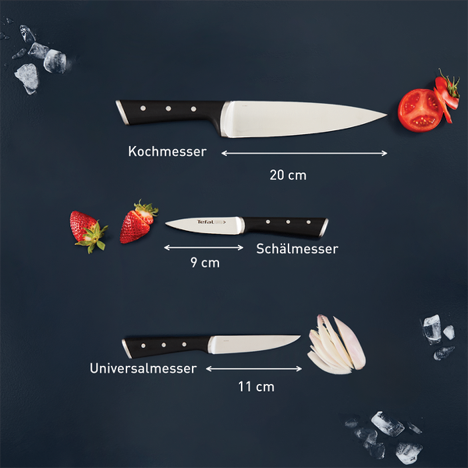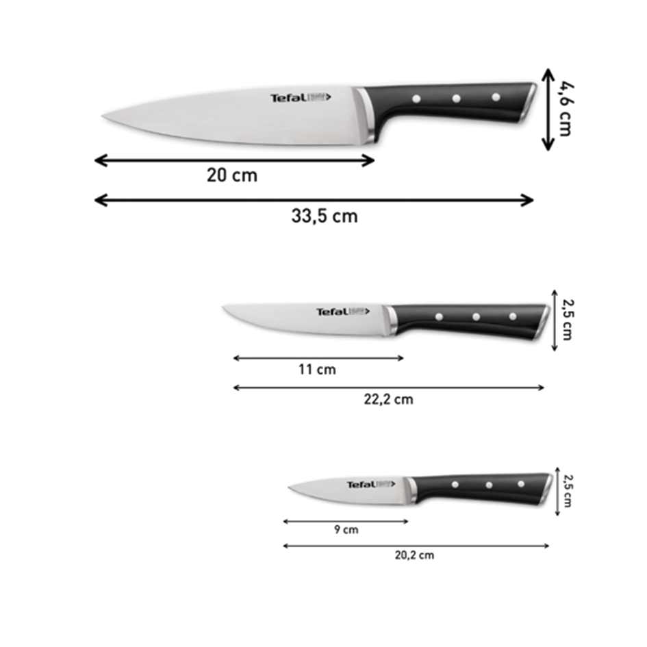 ست سه تیکه چاقو سرآشپز 20 سانتی متری چندکاره 11 سانتی متری میوه خوری 9 سانتی متری TEFAL ICE FORCE